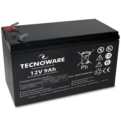 TECNOWARE POWER BATTERY 12V 9AH (EACPE12V09ATWL) - BATTERIA ERMETICA AL PIOMBO - LONG LIFE - GARANZIA 24 MESI
