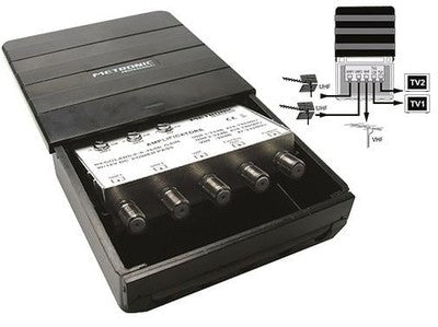 AMPLIFICATORE PER ANTENNE TV 2 USCITE 414142 CM.L11xP4,5xH10,5