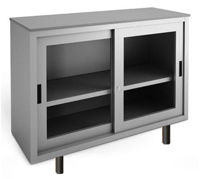 Armadio basso metallico verniciato con top in nobilitato e ante scorrevoli in vetro cm. 150x45x87H