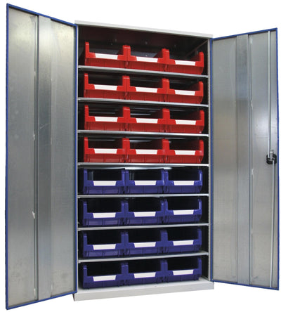 Armadio metallico con contenitori per minuteria cm. 100x27,5x195h