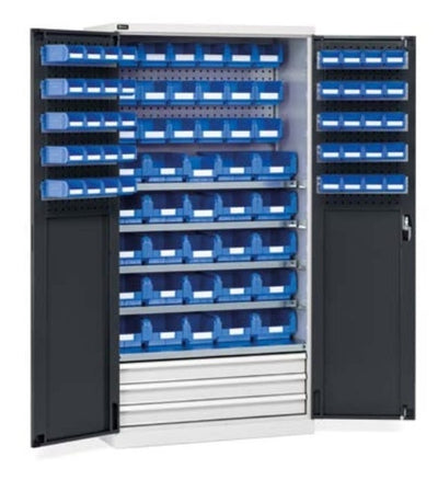 Armadio metallico per officina con piani, cassetti e separatori verniciato monoblocco cm. 100x50x200h