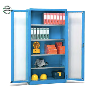 Armadio metallico con 4 piani con porte in policarbonato cm. 102,3x55,5x200h