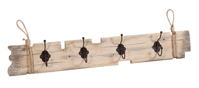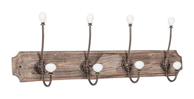 Biscottini Attaccapanni da parete in legno massiccio e ferro forgiato a mano finitura legno anticato 78x10x21 cm