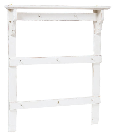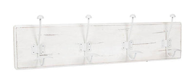 Biscottini Attaccapanni da parete in legno massiccio e ferro forgiato a mano finitura bianco anticato 78x10x21 cm
