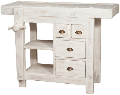 Biscottini Banco da lavoro Country in legno massello di tiglio finitura bianca anticata L116xPR63xH90 cm. Made in Italy
