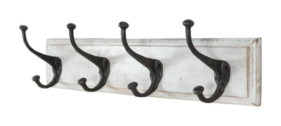 Biscottini Attaccapanni da parete in legno massiccio e ferro forgiato a mano finitura bianco anticato 76x13x22 cm