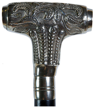 Biscottini Bastone "cavallo" nero da passeggio in legno e peltro