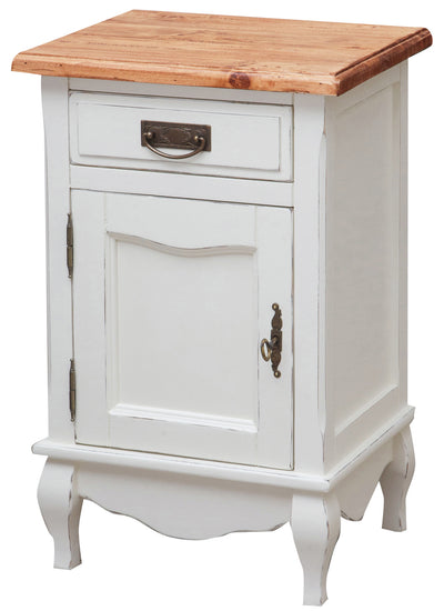 Biscottini Comodino Country in legno massello di tiglio struttura bianca piano finitura naturale L56xPR36xH66 cm. Made in Italy