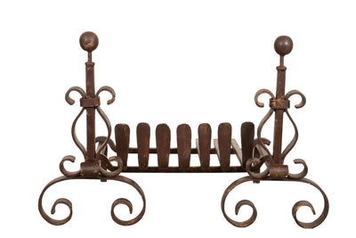 Biscottini Coppia di alari con braciere L70xPR50xH50 cm in ferro battuto Stabile composto
