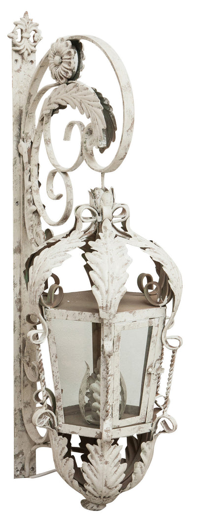 Biscottini Lampada applique a muro elettrificata in ferro battuto finitura bianca anticata L28xPR16,5xH61,5 cm