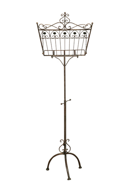 Biscottini Leggio da terra in ferro battuto pieno finitura ruggine anticata L46xPR32xH90-170 cm