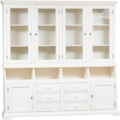 Biscottini Libreria Country in legno massello di tiglio finitura bianca anticata L230xPR50xH226 cm. Made in Italy