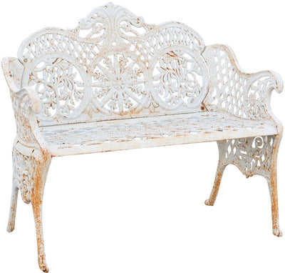 Biscottini Panchina Liberty in ghisa finitura bianca anticata 105x43x90 cm Robusta stabile