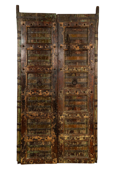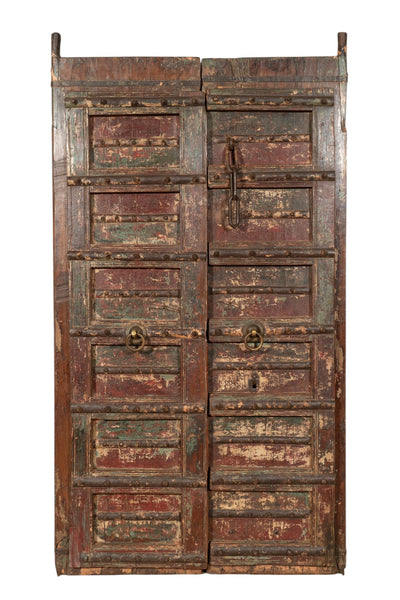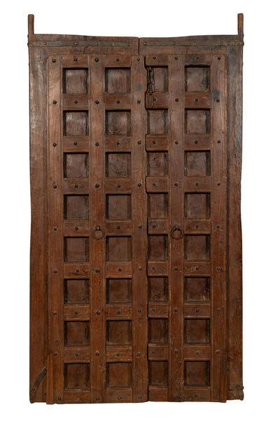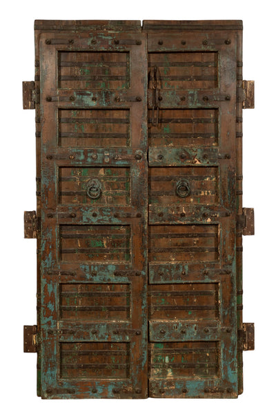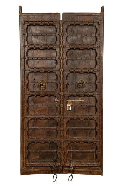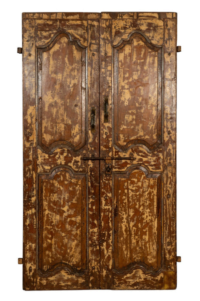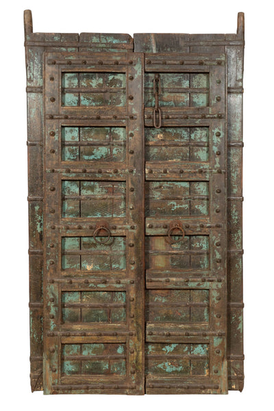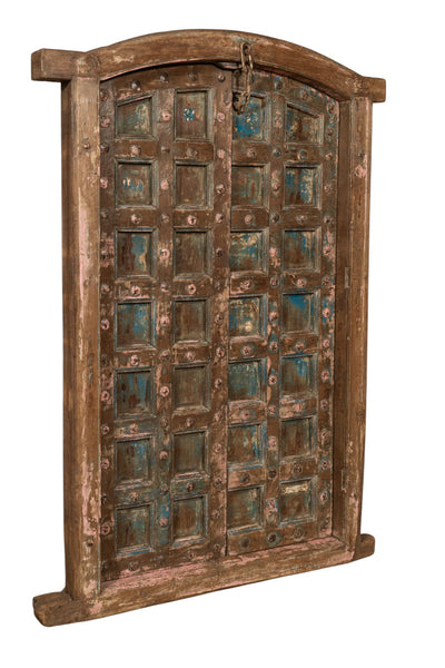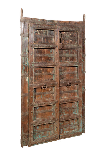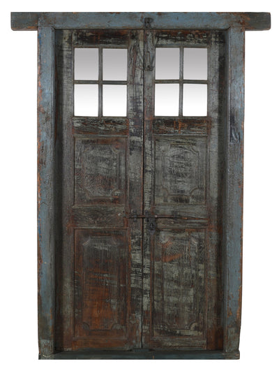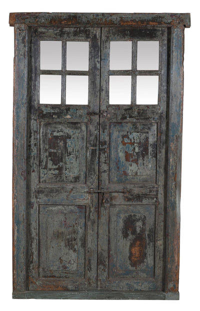 Biscottini Porta portone in legno massello e ferro da interno o da esterno vecchia e antica medievale con telaio e vetro