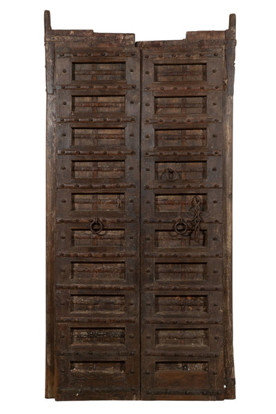 Biscottini Porta portone in legno massello e ferro da interno o da esterno vecchia e antica medievale scorrevole con telaio