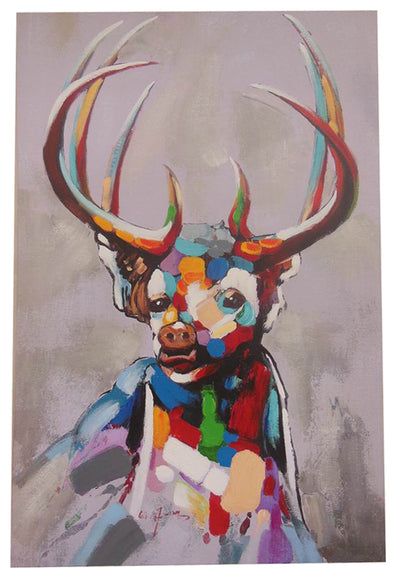 Biscottini Quadro olio su tela dipinto a mano cervo 60x3x90 dare tocco L60xPR3xH90