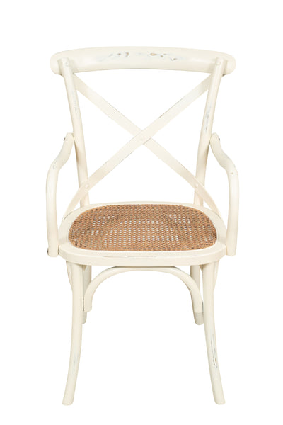 Biscottini Sedia con braccioli Thonet in massello di frassino finitura bianca e seduta in rattan L45xPR42xH77 cm.