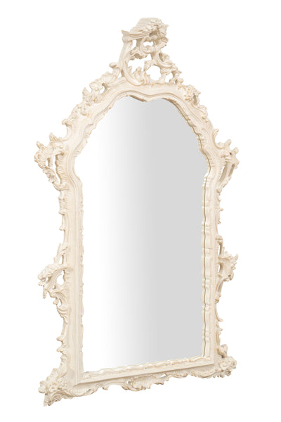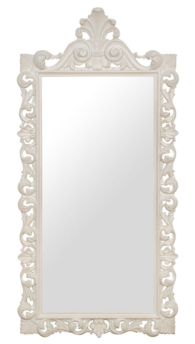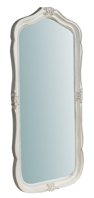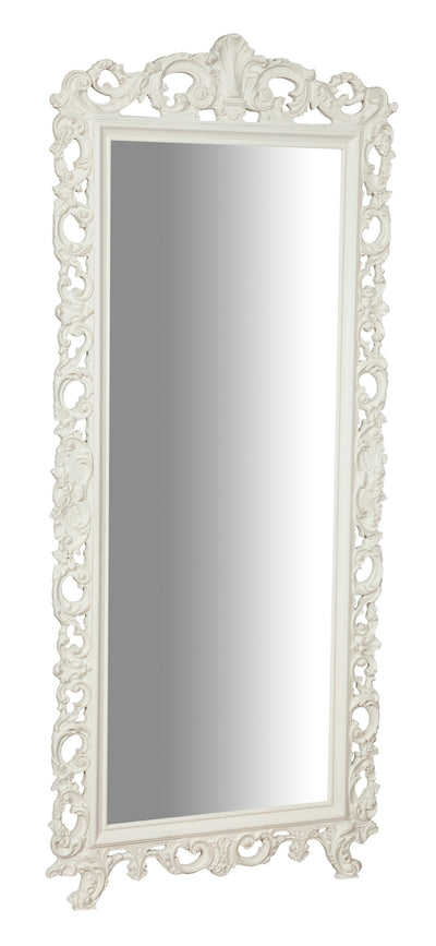 Biscottini Specchiera da parete in legno finitura bianco anticato L66xPR7xH118 cm Made in Italy