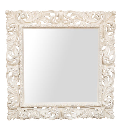Biscottini Specchiera da parete in legno finitura bianco anticato L46xPR4,5xH46 cm Made in Italy