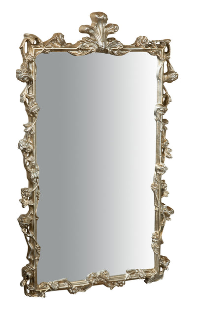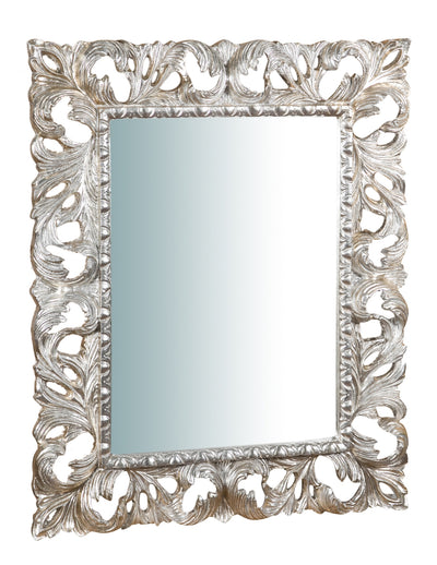 Biscottini Specchiera da parete in legno finitura foglia argento anticato Made in Italy