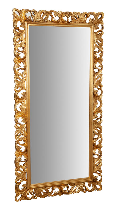 Biscottini Specchiera da parete in legno finitura foglia oro anticato L52xPR4,5xH133 cm Made in Italy