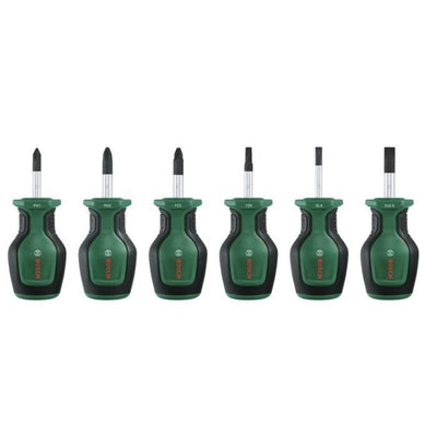 Bosch Set di 6 cacciaviti corti (per spazi ristretti PH/PZ/TX/Flat S2 acciaio punta magnetica ad alta coppia)