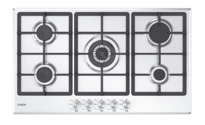 Candy chg93wx/1 piano cottura 90cm inox, griglie in ghisa, inox, 5 fuochi