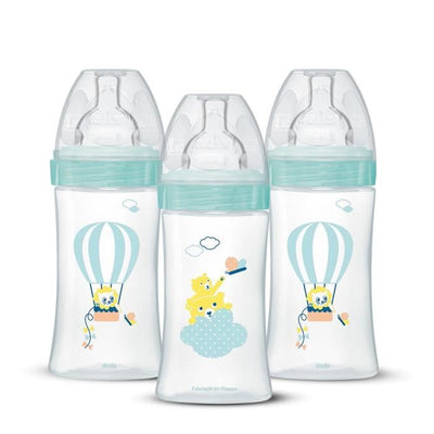 Confezione da 3 biberon - DODIE - EB19 - 270 ml - Tettarella piatta - Verde