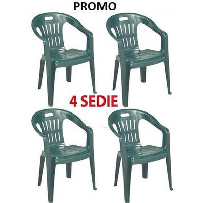 4 SEDIE POLTRONA IN RESINA PIONA VERDE IMPILABILI CM.56x55xH78 ARREDO GIARDINO