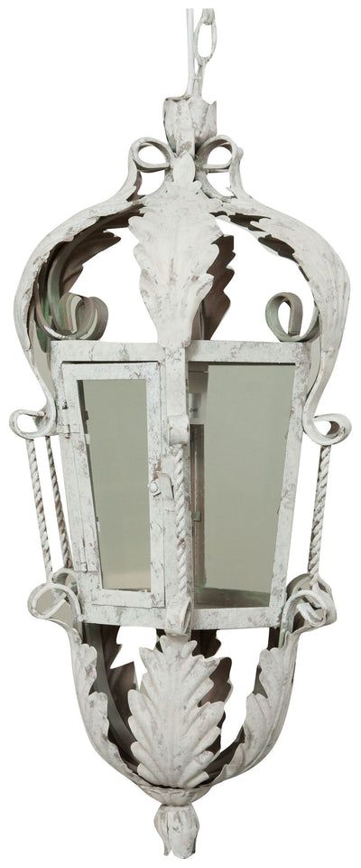 Biscottini Lanterna a soffitto in ferro battuto finitura bianca anticata L30xPR24xH58 cm