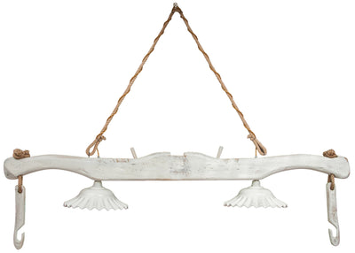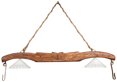 Biscottini Giogo lampadario in massello di tiglio bianca anticata con paralume ondulato Made in Italy