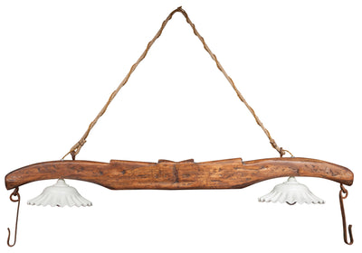 Biscottini Giogo lampadario in legno massello di tiglio finitura noce. Made in Italy