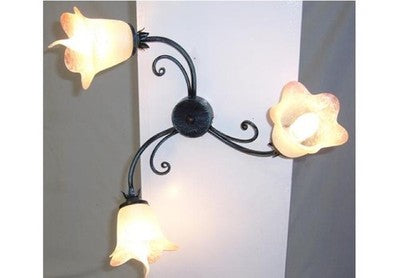 LAMPADARIO GANCIO A 3 LUCI IN FERRO BATTUTO LAMPADE LAMPIONE APPLIQUE LANTERNA
