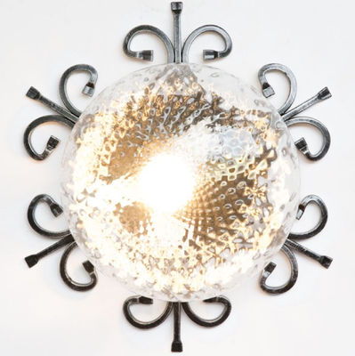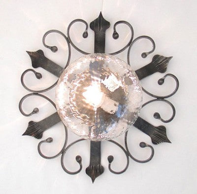 LANTERNA APPLIQUE LAMPADA SFERA D.20 FERRO BATTUTO CRUCCOLINI ASCENDENTE