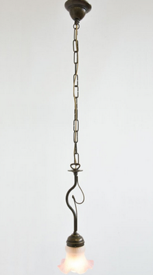 LAMPADE LINEA OLIVA LAMPADARIO 1 LUCE LIBERTY OTTONE BRONZATO E VETRO SOFFIATO