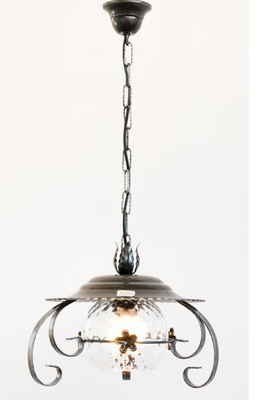 LAMPADE LINEA TAVERN LAMPIONE CM. 150 IN FERRO BATTUTO E VETRO SOFFIATO