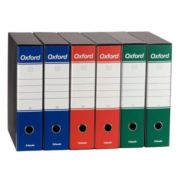 Il registratore Oxford rappresenta il simbolo dell’elevata qualità della produzione Esselte. Oxford è il registratore più venduto sul mercato italiano e vanta innumerevoli tentativi di imitazione. La resistente struttura in cartone da 2 mm rivestita di elegante carta goffrata, rende questo prodotto inconfondibile. Oxford si distingue per il raffinato rivestimento interno di colore pendant con la superficie esterna. Caratteristiche: - Le bande metalliche di rinforzo mantengono i bordi della custodia perfettamente diritti anche dopo un lungo utilizzo. - Il design originale e la qualità dei materiali sono alla base del successo di Oxford - Etichetta di dimensioni generose per favorire la personalizzazione e rendere più veloce l'identificazione del contenuto