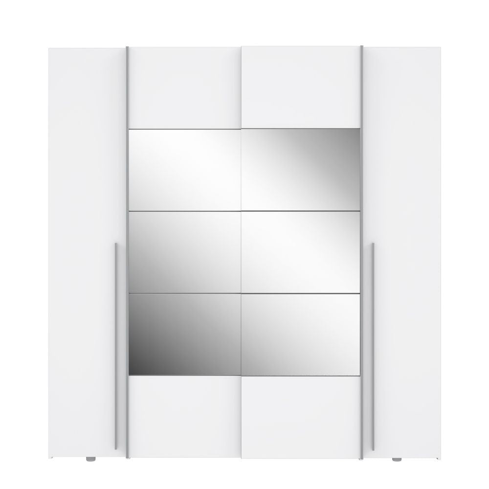 Armadio Callia 2 ante battenti bianco e 2 ante scorrevoli con specchio 200.1x61.2xH210.5 cm. - Vendiamonoi