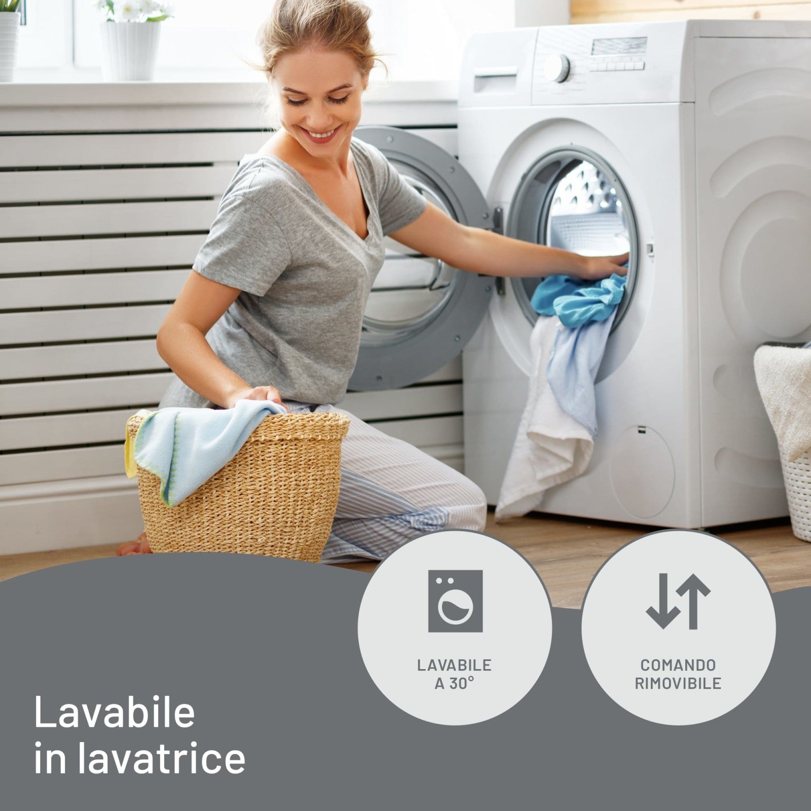 - Lavabile in lavatrice a 30°C