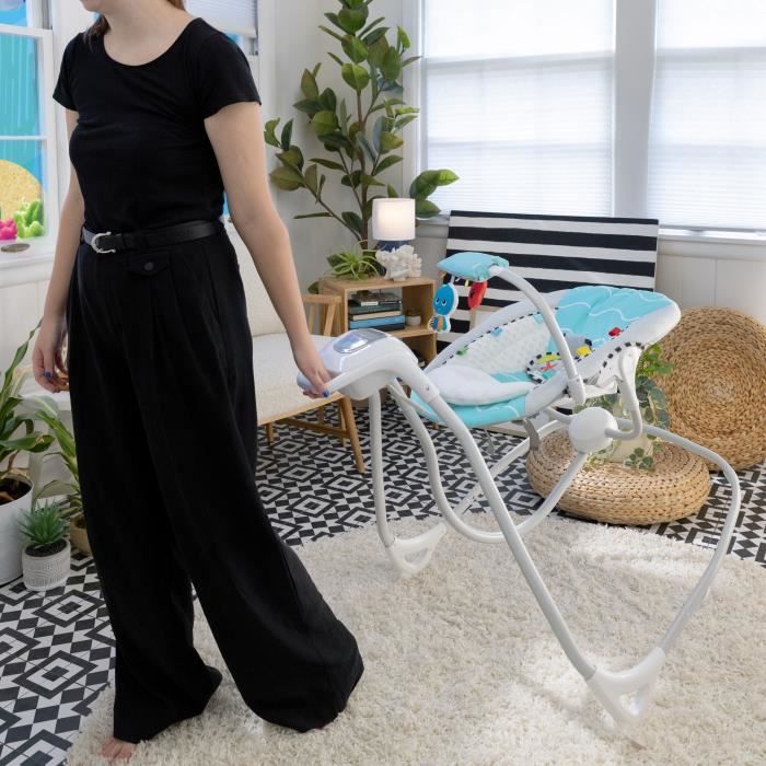 Altalena BABY EINSTEIN Ocean Explorers, leggera e compatta, sedile girevole a 180°, giochi inclusi, modello Curious Comfort