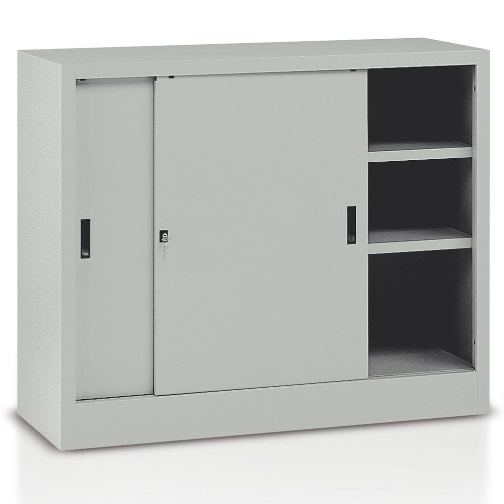 Nome: armadio da archiviazione ad ante scorrevoliDotazioni di serie: n° 1 armadioCaratteristiche del prodotto: - armadio realizzato in lamiera di acciaio 8/10 di prima scelta FeP01 con particolari in 12/10- vano interno con 2 piani regolabili su cremagliera con passo da mm. 40- angoli esterni arrotondati (R.8) come da normativa europea di sicurezza- porte dotate di serratura di sicurezza con chiave pieghevole in dotazione in duplice copia- predisposti per aggancio cartelle- portata massima a carico uniformemente distribuito supportata da ogni ripiano kg. 50- verniciati con polveri epossipoliesteri atossiche- dotati di soluzioni tecniche originali per facilitarne il montaggio e la funzione (porte scorrevoli con cuscinetti premontati)- colli imballati con gabbia di legno su pallet per evitare danneggiamenti Dimensioni esterne (LXPXH) cm.: 120x45x116h Dimensioni interne (LXPXH) cm.: 119,5x36x106h Colore: grigio chiaro RAL 7035; beige RAL 1013; antracite RAL 7016; bianco RAL 9010; alluminio RAL 9006; nero RAL 9005 a scelta dal menù a tendina Installazione: in kit di montaggio con pratiche istruzioni Conformità: certificato di qualità CATAS livello 4 - prove UNI: 8596/84 - 8597/84 - 8600/84 - 8601/84 - 8602/84 - 8606/84 - 8607/84 - 9081/86 Tempi di approntamento: colore grigio affidato al corriere in 10-15 gg. lavorativi; per altri colori occorrono 20-25 gg. lavorativi circa Tempi di consegna del corriere: 2-5 gg. lavorativi / 7 gg. lavorativi per Isole Destinazione d’uso: interno, ufficioInformazioni utili: ideale per l’archiviazione di raccoglitori e faldoni Dettagli aggiuntivi o richieste dovranno essere inserite nelle NOTE dell’ordine o inviate ad info@castellanishop.it
