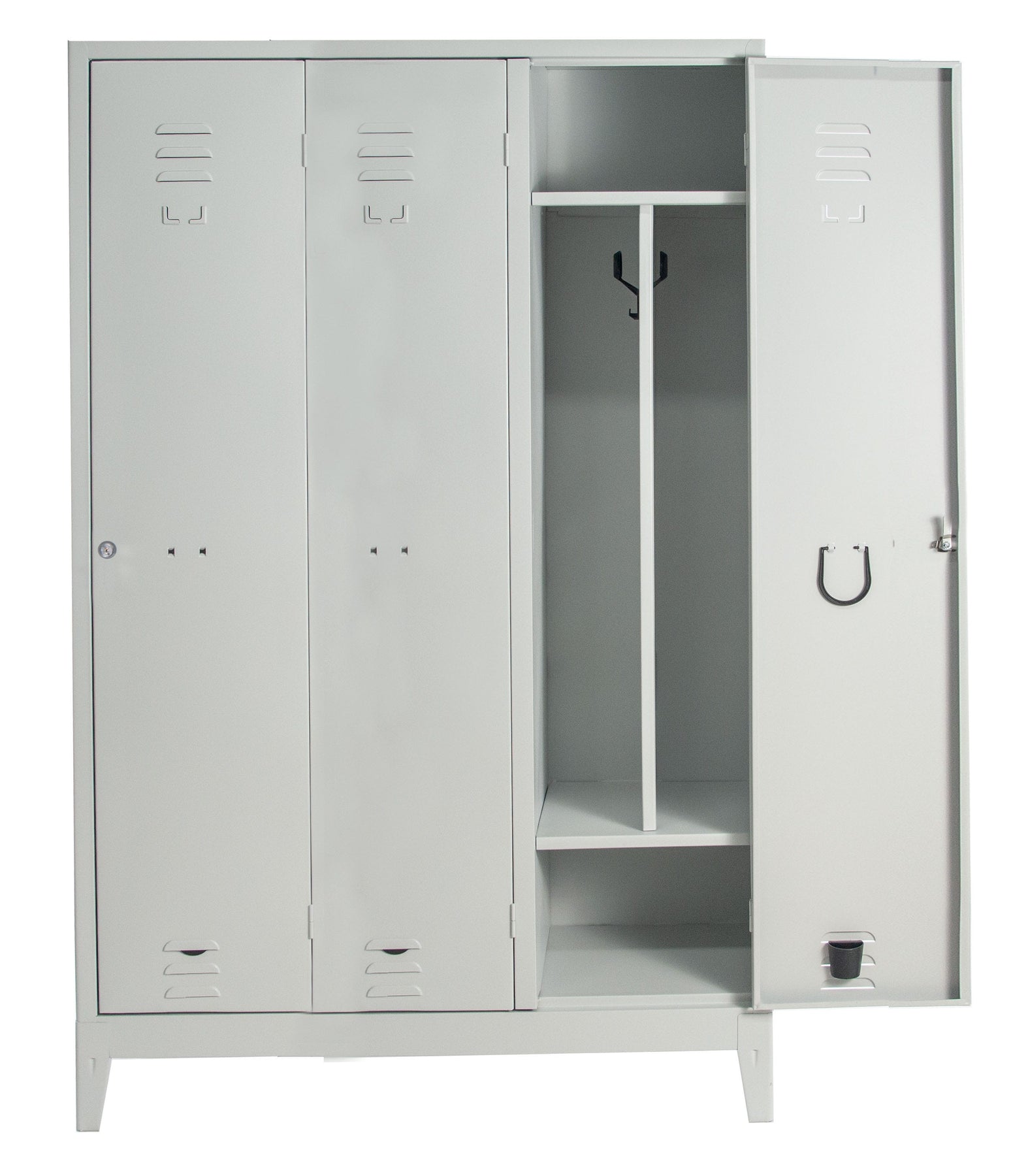 Nome: armadio spogliatoio in metallo Dotazioni di serie: n° 1 armadio spogliatoio Caratteristiche del prodotto: - armadio spogliatoio con bordi arrotondati- verniciatura in polvere epossipoliestere ai raggi UV- n° 2 ante battenti rinforzate con feritoie di aerazione superiori ed inferiori- porta cartellino stampato su ante- serratura a chiave- n° 1 piano fisso superiore ed inferiore in lamiera con divisore sporco/pulito centrale fisso in lamiera in ciascun vano- appendiabito in plastica nero- kit portaombrelli composto da anello e vaschetta raccogli gocce tutto in plastica neraDimensioni esterne (LXPXH) cm.: 101x33x180h Colore: corpo grigio RAL 7035; ante a scelta dal menù a tendina Installazione: monoblocco Conformità: dichiarazione di conformità D.Lgs.81/2008 e DGRV REGEL 108-007 Tempi di approntamento: colore grigio affidato al corriere in 2-4 giorni lavorativi; per altri colori occorrono circa 10-15 giorni lavorativi Tempi di consegna del corriere: 2-5 gg. lavorativi / 7 gg. lavorativi per Isole dall'affidamento al corriere Destinazione d’uso: interno, centri commerciali, alberghi - in ambienti NON UMIDI Informazioni utili: imballo con cassa di legno antiurto, il quale garantisce sicurezza nel trasportoDettagli aggiuntivi o richieste dovranno essere inserite nelle NOTE dell’ordine o inviate ad info@castellanishop.it PER ACQUISTARE LE PANCHE SPOGLIATOIO CLICCARE QUI