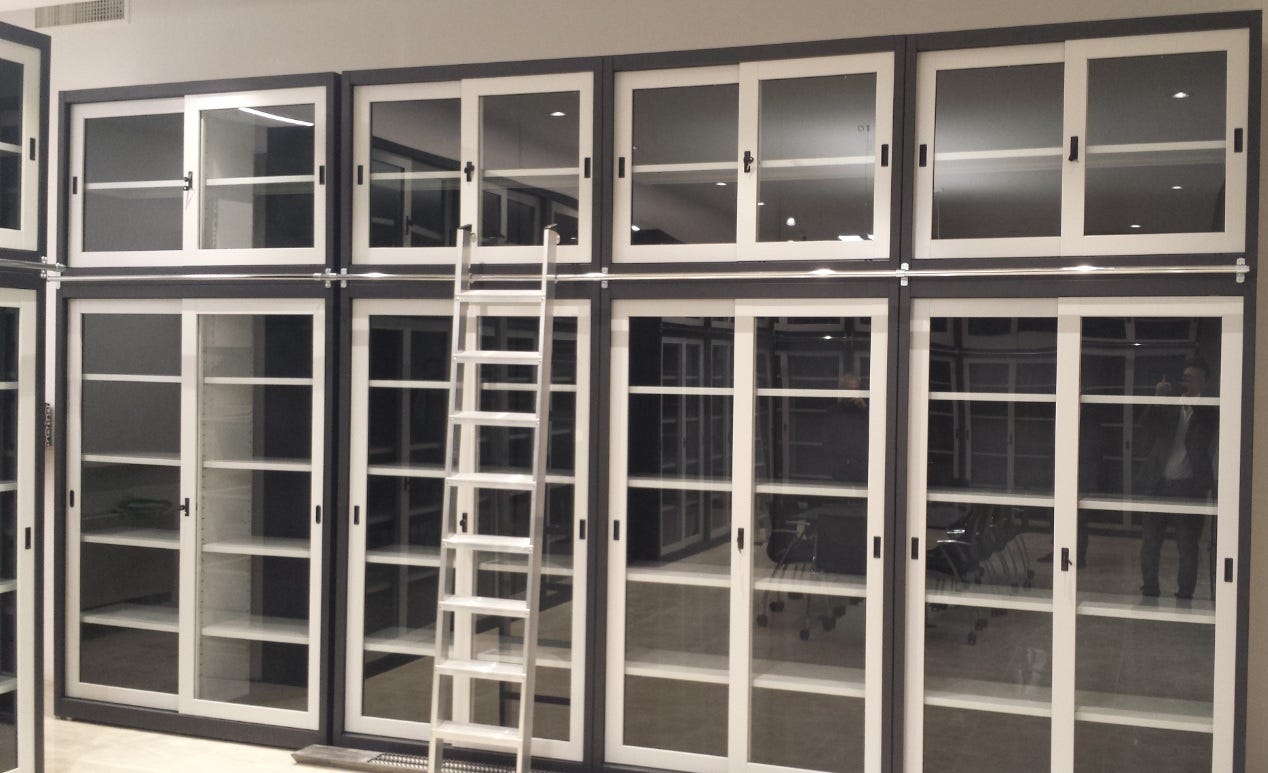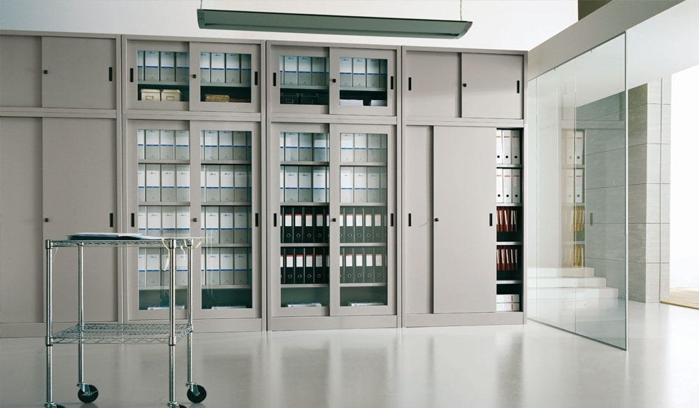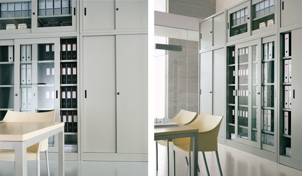 Armadio archivio documenti da ufficio con ante di vetro scorrevoli cm. 150x60x200h