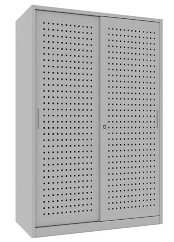 Nome: armadio per archiviazione ad ante scorrevoli Dotazioni di serie: n° 1 armadio per archiviazione Caratteristiche del prodotto: - n° 4 piani metallici regolabili - ante in lamiera forata - i fori disposti in modo regolare lungo le ante forniscono un motivo grafico oltre a consentire una migliore aerazione degli interni- dimensioni foro cm. 1x1- distanza tra i fori cm. 2,5- distanza fine fori perimetrale cm. 9 - serratura compresa Dimensioni esterne (LXPXH) cm.: 150x60x200hDimensioni interne (LXPXH) cm.: 73,5x51x190h (lato destro) e 73,5x51x190h (lato sinistro) Colore: a scelta dal menù a tendina Installazione: in kit di montaggio con pratiche istruzioni Conformità: - Tempi di approntamento: affidato generalmente al corriere in 15 gg. lavorativi circa Tempi di consegna del corriere: 2-5 gg. lavorativi / 7 gg. lavorativi per Isole dall'affidamento al corriere Destinazione d’uso: interno Informazioni utili: - Dettagli aggiuntivi o richieste dovranno essere inserite nelle NOTE dell’ordine o inviate ad info@castellanishop.itSU RICHIESTA E' POSSIBILE RICHIEDERE IL KIT PER L'ANCORAGGIO A PARETE DELL'ARMADIO (INDICARE ALL'INTERNO DELLE NOTE IN FASE DI CONFERMA ORDINE)