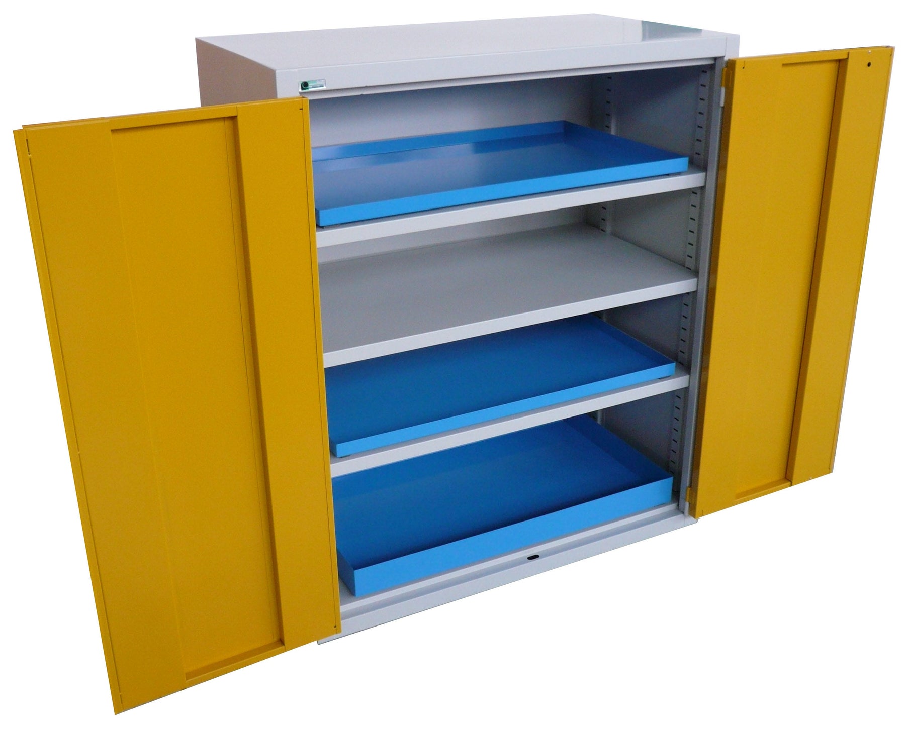Armadio basso in lamiera per officine con ante a battente fornito monoblocco cm. 100x50x100h