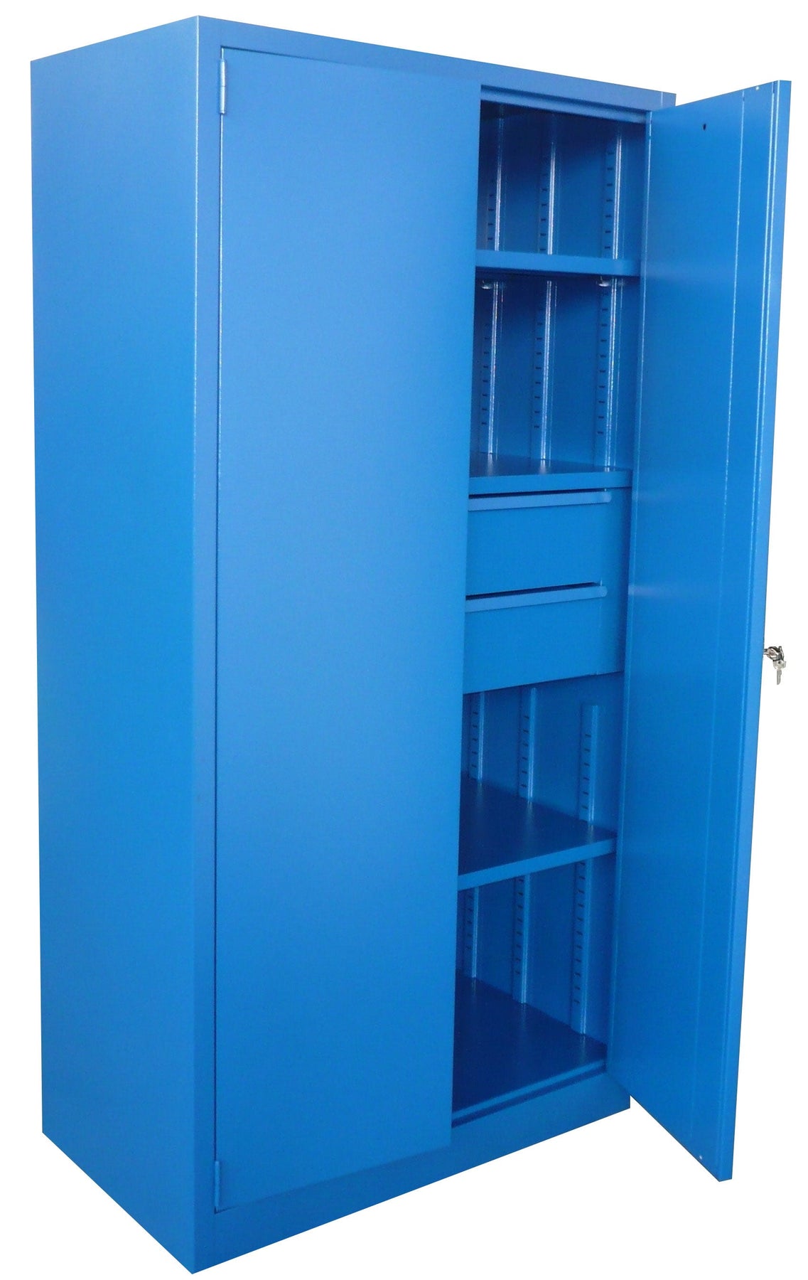 Armadio con ripiani e cassetti ad ante battenti con serratura monoblocco da officina cm. 100x50x200h