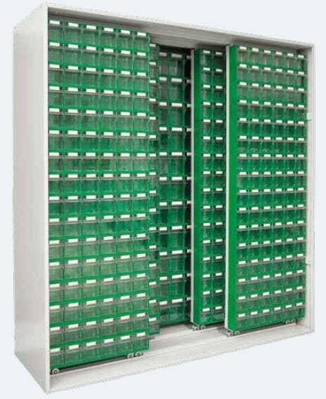 Nome: armadio portaminuteria per cassettiere madia con pannelli scorrevoli Dotazioni di serie: n° 1 armadio portaminuteria Caratteristiche del prodotto: - pannelli scorrevoli in orizzontale che permettono di risparmiare lo spazio e di allestire fino a 495 cassetti - pannelli scorrevoli su cuscinetti a sfera - struttura con n° 3 pannelli fissi affiancati sul fondo + n° 4 scorrevoli, realizzata in lamiera elettrosaldata con barre di rinforzo - verniciata a forno con polvere epossidica - portata singolo pannello: kg 160 circa- disponibile in tre configurazioni differenti a scelta dal menù a tendina; consultare allegato "Caratteristiche tecniche" Dimensioni esterne (LXPXH) cm.: 185x60x195h (dimensione pannello cm.: h 180) Colore: struttura grigio RAL 7035 Installazione: in kit di montaggio con pratiche istruzioni e viteria Conformità: prodotti in materiale riciclato Tempi di approntamento: affidato al corriere in 2-4 gg. lavorativi circa Tempi di consegna del corriere: 2-5 gg. lavorativi / 7 gg. lavorativi per Isole Destinazione d’uso: interno, negozi di vernici, ferramenta, colorifici Informazioni utili: cassetti MB3: blocco composto da n. 3 cassetti cm. 60x21,4x24h (cad. cassetto cm. 20x21,4x24h circa); cassetti MB4: blocco composto da n. 4 cassetti cm. 60x17,7x20,6h (cad. cassetto cm. 15x17,7x20,6h circa); cassetti MB5: blocco composto da n. 5 cassetti cm. 60x13,5x16,4h (cad. cassetto cm. 12x13,5x16,4h circa); cassetti MB6: blocco composto da n. 6 cassetti cm. 60x9,4x11,2h (cad. cassetto cm. 10x9,4x11,2h circa) Dettagli aggiuntivi o richieste dovranno essere inserite nelle NOTE dell’ordine o inviate ad info@castellanishop.it