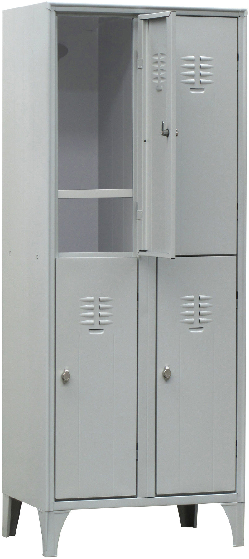 Nome: armadietto spogliatoio multispogliatoio a 4 posti Dotazioni di serie: n° 1 armadietto spogliatoio con chiusura Caratteristiche del prodotto: asole sul tetto, per consentire un'ottima circolazione d'aria; ante a battente, rinforzate e dotate di feritoie di aerazione nella parte superiore ed inferiore; cerniere speciali interne anti scasso con rotazione a 105° antitrauma; appendiabito sullo schienale- gancio appendiabiti in PVC sullo schienale- lamiera d'acciaio profilata prima scelta (nastri tipo FE DC01) spessore 6/1- altezza piedi cm. 15- bordi arrotondati antitrauma- chiusura a scelta tra maniglia lucchettabile o serratura a cilindro con doppia chiave in dotazione- portacartellino in materiale plastico applicato all’anta- piano inferiore portascarpe ad (H) cm. 20 dalla base Dimensioni esterne (LXPXH) cm.: 70x50x180h Colore: corpo grigio RAL 7035; ante a scelta dal menù a tendina: grigio RAL 7035; rosso RAL 3000; giallo RAL 1018; bordeaux RAL 3003; blu RAL 5017; verde RAL 6018; grigio RAL 7039; arancio RAL 2009Installazione: monobloccoConformità: ISO 9001 + certificazioni sui materiali rilasciate dai laboratori accreditatiTempi di approntamento: affidato al corriere in 15-20 gg. lavorativi circa (20-25 gg. lavorativi se con ante colorate); per motivi logistici e per garantire l'integrità dell'armadio, affidiamo la spedizione solamente a corrieri di fiduciaTempi di consegna del corriere: 2-5 gg. lavorativi / 7 gg. lavorativi per Isole dall'affidamento al corriereDestinazione d’uso: interno - in ambienti NON UMIDIInformazioni utili: -Dettagli aggiuntivi o richieste dovranno essere inserite nelle NOTE dell’ordine o inviate ad info@castellanishop.it PER ACQUISTARE LE PANCHE SPOGLIATOIO CLICCARE QUI