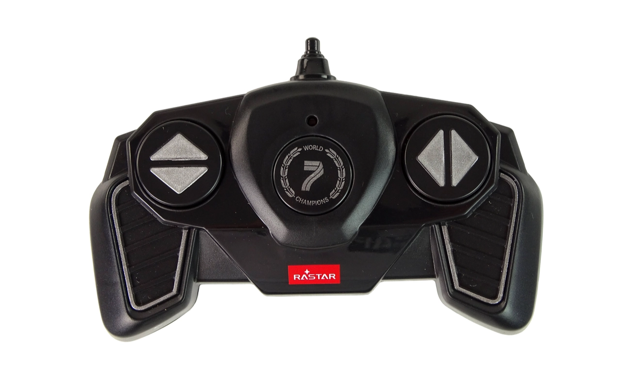 Questa monoposto radiocomandata riproduce fedelmente l’aspetto della vera vettura da corsa MERCEDES-AMG PETRONAS – dalla livrea nera ai loghi degli sponsor. Grazie alle gomme in caucciù l’auto mantiene saldamente l’aderenza su varie superfici e l’ala anteriore e posteriore in plastica morbida resiste meglio ai piccoli urti durante la guida.