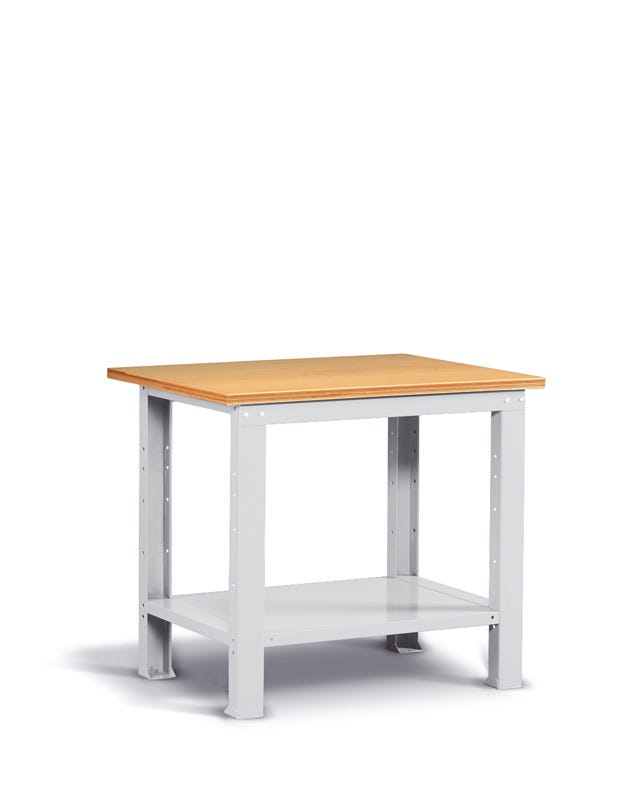 Banco lavoro in acciaio verniciato e piano superiore in faggio cm. 102,4x75x88h